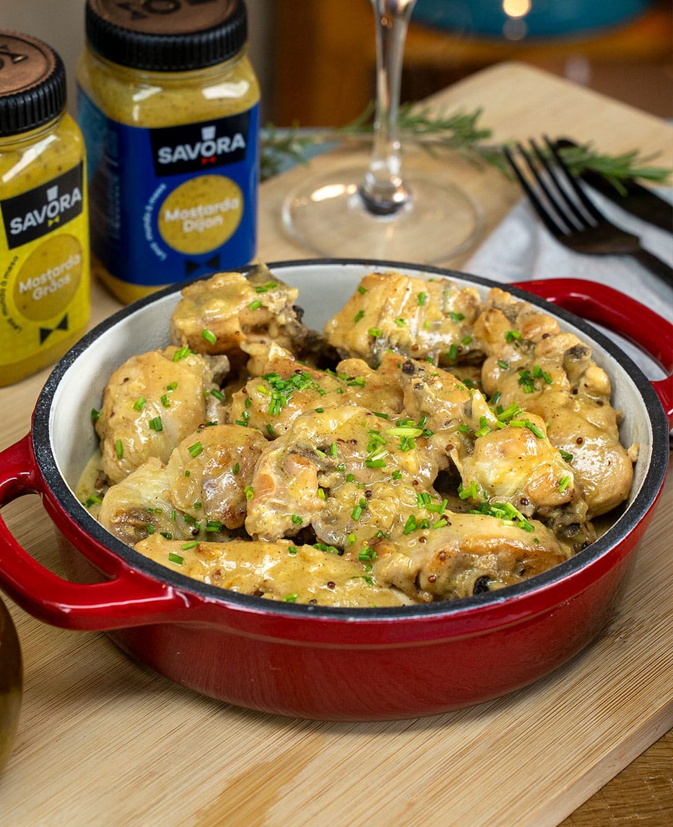 De inspiração francesa, o famoso “Poulet à la moutarde” vai deixa-lo de água na boca.